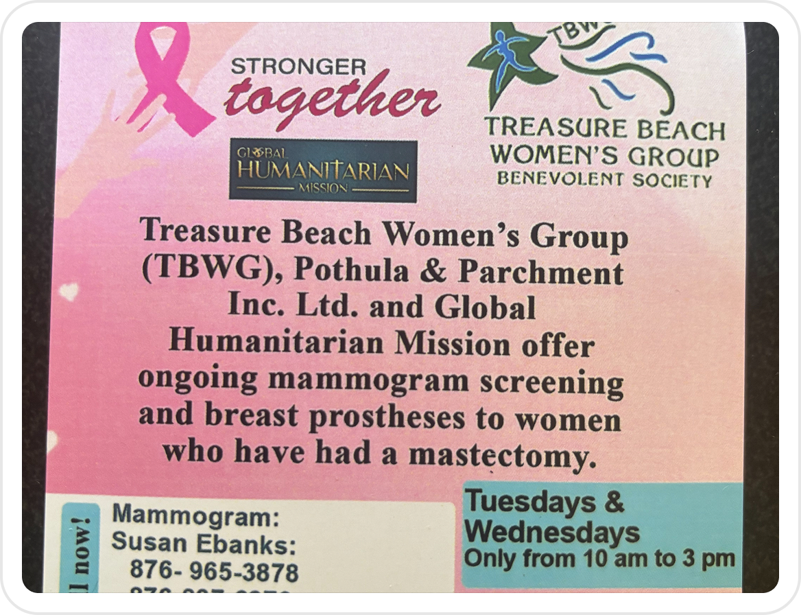 At the Treasure Beach Women’s Group (TBWG), we believe that good health is the foundation of a thriving community. From women and children to the elderly, we focus on meeting immediate health needs while building toward a long-term vision: a fully equipped community health centre that brings care and resources together under one roof.